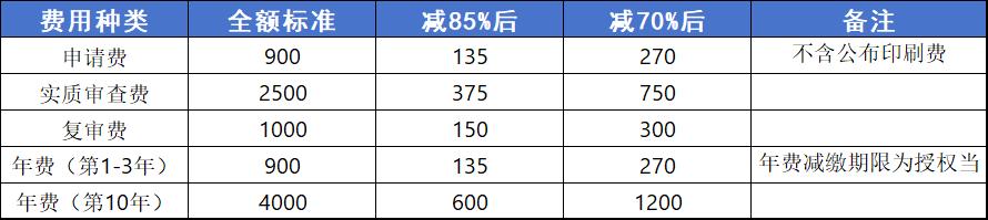 完成备案后,申请人可享受专利申请费、实质审查费、年费等费用的减缴,减缴比例根据申请人数量划分,具体标准如下: