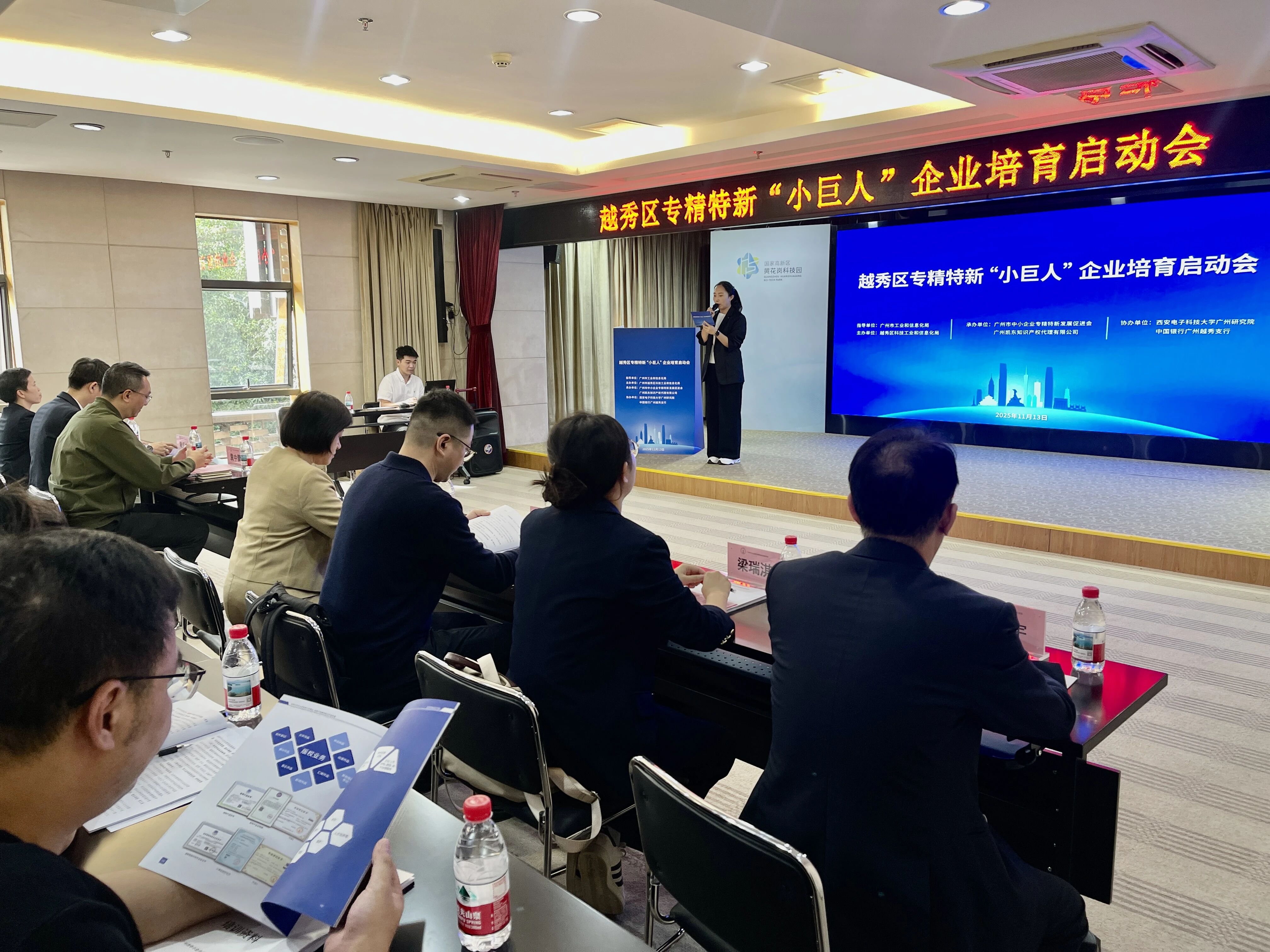 11月13日下午,“越秀区专精特新‘小巨人’企业培育启动会”在越秀区黄花岗科技园圆满召开。本次活动由广州市工业和信息化局指导,越秀区科技工业和信息化局主办,广州市中小企业专精特新发展促进会与广州凯东知识产权代理有限公司联合承办,以赋能中小企业向“专精特新”高质量转型为核心,助力企业精准把握培育政策、提升申报实操能力,推动越秀区中小企业蓄力成长为“小巨人”、勇立发展潮头。