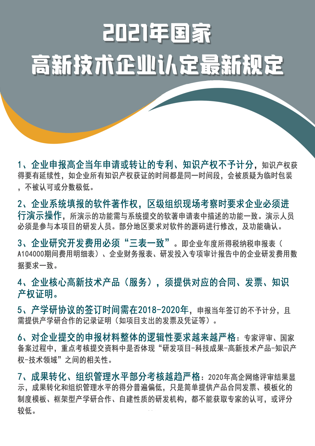 在这里,再次为大家整理了一份2021年高新技术企业申报的最新规定。