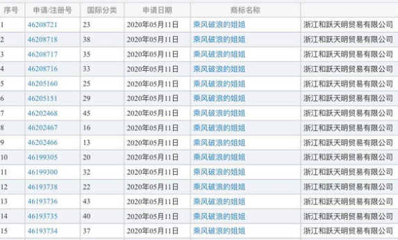 想去蹭一下《乘风破浪的姐姐》热度,去注册类似的商标。